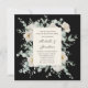 O convite de casamento cristão elegante representa um belo design de jardim botânico floral a cores aquáticas com rosas brancas e verde em fundo preto. Apresenta uma introdução inspiradora da Bíblia Verse Song de Salomão 6:3, "Eu sou meu amado e meu amado é meu." Se há algo que você não vê ou se você quer mudar, por favor, entre em contato comigo com o botão de bate-papo na página Zazzle.