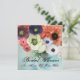 Elegantes rosas brancas vermelhas e anemones roxas rosadas em um fundo azul aqua com motivos damasco,. Este design sofisticado e único é perfeito como um anúncio de casamento, cartões de lugar, save-the-date, cartões de agradecimento, chás de noiva, festas de aniversário de 16 anos, festas, chás de noivado, ou praticamente qualquer evento que você desejar!
