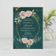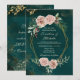 Convite Cristão de Casamento de Inverno Vintage retrata um design elegante de aquarela com rosas cor-de-rosa, frutos vermelhos e folhagens adornando uma moldura geométrica dourada em um fundo verde escuro com respingos dourados. Apresenta uma citação inspiradora da escritura, "E os dois se tornarão um só." No verso, versículo bíblico 1 Coríntios 13:7-8, "O AMOR… tudo espera, tudo suporta, O AMOR nunca falha." Uma boa escolha para casamentos de Natal e de inverno. Se há algo que você não vê ou gostaria de alterar, use o botão de bate-papo nesta página para entrar em contato comigo.