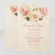 Cores românticas e sutilmente lindas de rosa cor de blush para um casamento elegante e romântico. Fundo com acabamento creme falso. Se você quer classe com simplicidade, então este design é para você. As rosas são tão simples e tão chiques, dependendo da cor e textura, bem como dos verdes usados nos arranjos e buquês, etc. Fitas de cetim e vestidos de tafta com sapatos tingidos ficariam lindos. Posso imaginar muitas fitas. Você pode até considerar adicionar algumas fitas de cores pastel diferentes na decoração para não sobrepor o tema original. Posso imaginar este casamento e ele parece lindo, como um conto de fadas. Este design de convite é um ótimo lugar para começar a planejar o seu dia especial.