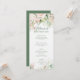 Rosas cor-de-rosa claras e folhas verdes moldura para o menu de casamento.