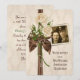Buquê de rosas marfim com pérolas em fundo de damasco e foto personalizada para casal homenageado.