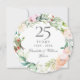 Com uma delicada grinalda floral em aquarela, este convite de aniversário de casamento de 25 anos botânico elegante pode ser personalizado com as suas informações especiais de aniversário de prata. O verso apresenta uma grinalda floral correspondente emoldurando as datas do seu aniversário em texto branco elegante sobre um fundo prateado. Concebido por Thisisnotme©