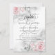 Convite de Casamento Rosa | Uma combinação de rosas cor-de-rosa-doce, com folhas iridescentes e faíscas no topo de uma camada de água de cinza de pérola, traz estes convites diretamente para o atual estilo BOHO moderno. Uma combinação de caligrafia de script combinada com um layout de texto minimalista e contemporâneo faz dele um pacote de casamento de estilo de tendência. Esta é parte de uma coleção de artigos de papelaria de casamento com acessórios de suite de papelaria de casamento criados para o BarefootBride™ por © WhimsicalArtwork™.