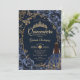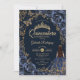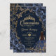 Marinho e ouro, convite para celebração da Quinceanera. Apresenta uma garota morena em vestidos de vestido de bola, borboletas douradas, rosas de aquarela tiara e letra de script. Perfeito para uma elegante celebração de glam estilo princesa. Personalize com seus próprios detalhes. Impressos convites Zazzle ou modelo de impressão digital instantânea para download.