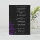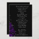 Rosas roxos clássicos e "faíscas" gráficos estrelados brancos se unem para dar a essas flores góticas "pop" contra um fundo preto a jato. Elegante e moderno. Louco e elegante, perfeito para casamentos Góticos, doces 16 aniversários, festas de Halloween e muito mais. Todos os elementos estão impressos no nosso cartão de alta qualidade, não incluem ouro real, joias, gravuras ou outros elementos têxteis. Todos os designs são direitos autorais, Tabitha Jones, todos os direitos reservados.