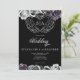 As Mãos do Esqueleto Gótico Preto e Branco Adoram Monograma com Convite de Casamento Rosa. Com um roteiro de na moda para o casamento e personalize facilmente o resto do texto. As cores da fonte podem ser alteradas através do menu de edição. Você também pode alterar as cores de fundo em ambos os lados, se desejar.