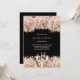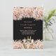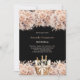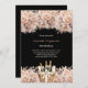Um convite moderno, na moda e glamouroso para uma festa de aniversário. Fundo preto, decorado com uma cesta com flautas, frascos espumantes e beige, flores cremosas. Personalize e adicione os detalhes da sua festa.