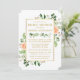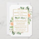 Convite Rosas de Pêssego de Aquarela Chá de panela Dourado