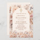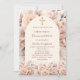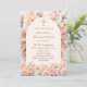 Um convite moderno e na moda para uma Primeira Comunhão. Creme, fundo colorido de pêssego, estrutura de arco, decorada com flores creme. Personalize e adicione seu nome e os detalhes.