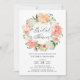 Rosas de pêssego e Chá de panela Hydrangeas Wreath. Chá de panela personalizável com ilustrações de cor d'água rosas de pêssego e marfim, pêssegos e híbridos com sotaque de folhagem. Este convite floral é perfeito para chás de panela de primavera e jardim. Itens correspondentes estão disponíveis.