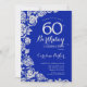 Convite de aniversário 60º floral azul-real. Design elegante com rosas, folha de falso prata e letra de script de tipografia. A Trendy convida o cartão perfeito para uma festa de na moda. Pode ser personalizado para qualquer idade. Impressos convites Zazzle ou modelo de impressão digital instantânea para download.