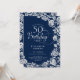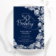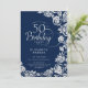Marinho prata floral 50º convite de aniversário. Design elegante com rosas, folha de ouro falsa e letra de script de tipografia. A Trendy convida o cartão perfeito para uma festa de na moda. Pode ser personalizado para qualquer idade. Personalize com seus próprios detalhes. Impressos convites Zazzle ou modelo de impressão digital instantânea para download.