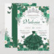 Convite Rosas de Prata Verde Princesa Elegante Quinceanera