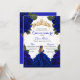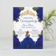 Convite Rosas de Quinceañera azul Elegante com brilho Dour