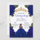 Convite Rosas de Quinceañera azul Elegante com brilho Dour