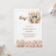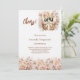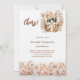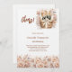Um convite moderno, na moda e glamouroso para uma festa de aniversário. Fundo branco, decorado com uma cesta com flautas, frascos espumantes e beige, flores cremosas. Personalize e adicione os detalhes da sua festa.