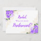 Convide suas madrinhas com este simples cartão floral elegante, com buquês de rosas de cor d'água púrpura com acentos florais de ouro em dois cantos, moldando o texto. O dorso tem uma textura roxa de aquarela.