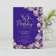Convite de festas de aniversário de 30 anos floral roxo e dourado. Design elegante com rosas, folha de ouro falsa e letra de script de tipografia. A Trendy convida o cartão perfeito para uma festa de na moda. Pode ser personalizado para qualquer idade. Personalize com seus próprios detalhes. Impressos convites Zazzle ou modelo de impressão digital instantânea para download.