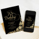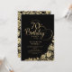 Simples convite de aniversário elegante em preto e ouro. Design clássico com rosas, folha de ouro falsa e letra de script de tipografia. A Trendy convida o cartão perfeito para uma festa de na moda. Personalize com seus próprios detalhes. Pode ser personalizado para qualquer idade. Impressos convites Zazzle ou modelo de impressão digital instantânea para download.