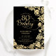Convite de aniversário 80 floral de ouro preto. Design elegante com rosas, folha de ouro falsa e letra de script de tipografia. A Trendy convida o cartão perfeito para uma festa de na moda. Pode ser personalizado para qualquer idade. Personalize com seus próprios detalhes. Impressos convites Zazzle ou modelo de impressão digital instantânea para download.