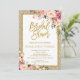 Convite Rosas Dourados e azuis com Chá de casamento de noi