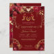 Convite de Quinceanera para um elegante rancho do país ocidental / tema charro. Apresentando elegantes burgundy e marrom florais e sotaques de ouro, rodas de vagão, chapéu e texto de charro sombrero e uma silhueta de cavalo no fundo. Verifique o compro deste convite em diferentes combinações de cores para corresponder ao seu evento, bem como a mais acessórios para reunir o dia