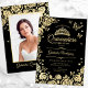 Convite para comemoração da Quinceanera de ouro negro. Apresenta fontes de script, borboletas, rosas de ouro e tiara. Design elegante com foto na parte traseira da placa. Perfeito para a celebração do estilo da princesa. Personalize com seus próprios detalhes. Impressos convites Zazzle ou modelo de impressão digital instantânea para download.