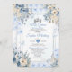 Convite Rosas Elegante de Prata e Azul Dusty MIS QUINCE