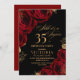 Convite Rosas Elegante Vermelho e Preto 35º Aniversário