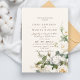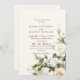As rosas brancas de convite minimalista moderno com poeira de ouro são um convite elegante e clássico. Design apresenta uma fonte manuscrita e um design minimalista moderno. Para alterar os detalhes, clique em "Personalizar".