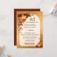 Convite de aniversário de casamento com um design de rosa em aquarela em um fundo de terracota em dourado rosado. Lindos para uma celebração de outono.