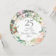 Com uma delicada grinalda floral em aquarela, este convite de aniversário de casamento de 25 anos botânico e elegante pode ser personalizado com as suas informações especiais de aniversário de prata. O verso apresenta uma grinalda floral correspondente emoldurando as datas do aniversário em texto branco elegante sobre um fundo prateado. Concebido por Thisisnotme©
