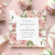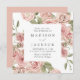 Convites florais elegantes com seus nomes e detalhes de casamento emoldurados por rosas de aquarela em tons de rosa-pincel e rosa poeirento com folhagem verde-escura. Personalize os convites de casamento quadrado com seus detalhes de casamento abaixo. Os convites românticos de casamento de rosa são perfeitos para casamentos de primavera e jardim de verão!