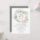 Com uma delicada grinalda floral de aguarela, este cartão de aniversário de casamento de 25 anos chic e botânico pode ser personalizado com as suas informações especiais de aniversário de prata. O verso apresenta uma grinalda floral correspondente emoldurando as suas datas de aniversário em texto branco elegante num fundo prateado. Concebido por Thisisnotme