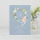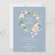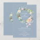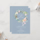 Com uma linda grinalda floral de rosas em aquarela. Este convite de casamento botânico pode ser personalizado com os detalhes especiais do seu dia de casamento em tipografia branca moderna em um fundo azul empoeirado. O verso tem uma grinalda correspondente que envolve as iniciais do seu monograma. Concebido por Thisisnotme