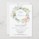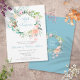 Um convite de festa surpresa de aniversário de 60 anos elegante com uma delicada grinalda floral em aquarela que pode ser personalizada com as informações do seu aniversário especial. O verso apresenta uma grinalda floral correspondente emoldurando as datas do aniversário em texto elegante sobre um fundo azul diamante. Desenhado por Thisisnotme©