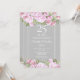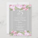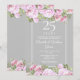 Convite floral de rosa do 25º aniversário de casamento prateado com belas guirlandas de rosas cor-de-rosa. Este convite vintage elegante pode ser personalizado com as informações da sua celebração especial de 25 anos, com um fundo prateado no verso. Criado por Thisisnotme©