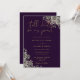 Convite Rosas Florais Góticas Roxas e Douradas de Casament