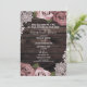 Convite Rosas Florais Rosa Poeira Madeira Rústica Noivado