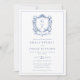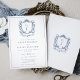 Este Elegante Rosa francês Blue Monograma Crest Wedding Invitation apresenta uma crista formal vintage monograma acentuada com rosas franceses, tipografia clássica e uma delicada imagem.