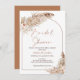 Convite de chá de lingerie em estilo boêmio com caligrafia moderna em rosa dourado falso, apresentando dois arranjos florais adoráveis com grama de pampas em tons naturais e terracota e um arco de terracota.