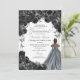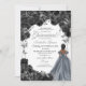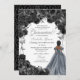 Quinceanera Floral Elegante Preta e Prata Convite de Aniversário