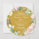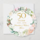 Com uma delicada grinalda floral em aquarela, este convite de aniversário de casamento de 50 anos chic e botânico pode ser personalizado com as suas informações especiais de aniversário de ouro. O verso apresenta uma grinalda floral correspondente enquadrando as datas do seu aniversário em texto branco elegante sobre um fundo dourado. Concebido por Thisisnotme©