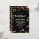 Este elegante chá de panela botânico é perfeito para um moderno chá de panela floral. O simples design apresenta um jardim botânico de rosas roxas e magenta e folhas verdes com tipografia branca elegante sobre fundo preto em negrito.
