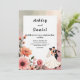 Este elegante convite de casamento floral de aquarela é perfeito para um casamento moderno. A design romântica apresenta uma elegante estrutura floral de aquarela com uma ilustração noiva e noiva e caligrafia preta sobre fundo branco.