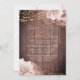 Este convite de casamento tem um tema shabby-chic. O fundo é um padrão de tábuas de madeira ou passarela de madeira com rosas rosa bege em aquarela com detalhes cintilantes. Luzes de corda românticas acentuam as flores no topo.