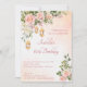 Convite elegante de festa de aniversário com rosas rosa creme pastéis e lanternas marroquinas.