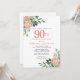 Lindas rosas rosa e flores brancas são enfiadas em folhas verdes. As bagas azuis escuras adicionam uma vibração botânica. 90 é escrito em grandes números cor-de-rosa.