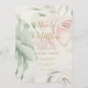 Celebre seu dia especial com nossas Rosas Rosa Esbranquiçadas e Dourado Convite Personalizado para Casamento. Este convite elegante apresenta um design impressionante com seus nomes em um roteiro de ouro luxuoso, juntamente com detalhes essenciais de casamento em fontes elegantes e sans-serif. As rosas de aquarela suave, cor-de-rosa-claro e verde-sábio, adicionam um toque de romance e sofisticação, complementando perfeitamente o fundo branco. Ideal para casais que buscam um eterno e toque personalizado em sua papelaria de casamento, este convite é uma bela maneira de anunciar seu dia de casamento para amigos e família.